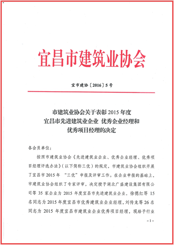 宜昌市建筑业协会2015表彰决定