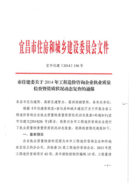 宜昌市建委2014年度工程造价咨询企…