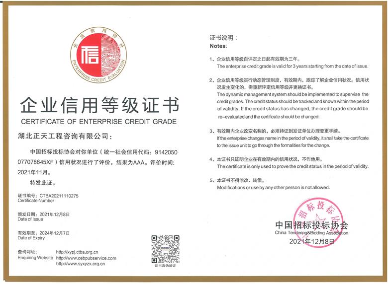 中招协企业信用等级AAA